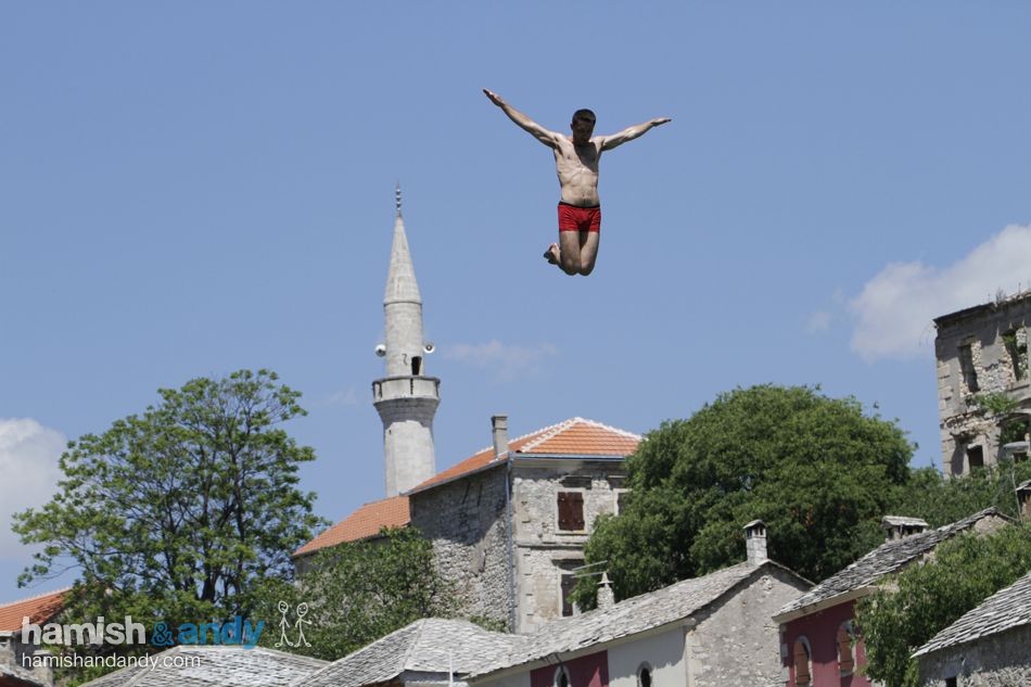 The ‘Stari Most’ Bridge in Mostar, Bosnia is 25 metres above the river. It has become a rite of passage for young men to jump from the bridge – but are Hamish & Andy man enough?