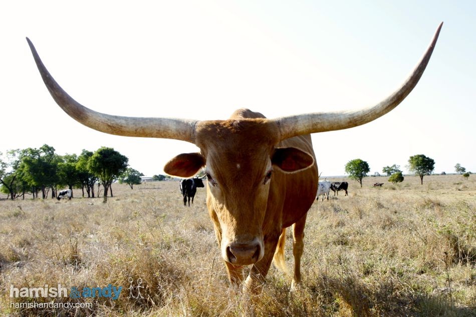 We visit a Ranch in Queensland where the owners Michael & Lynda have a resident Bull with the largest horns in the world! Measuring over 9ft tip-to-tip we couldn’t pass on the opportunity to hang our wet laundry to dry.