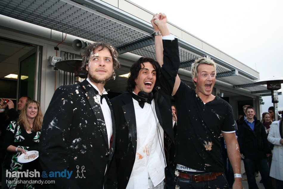 After an elaborate setup, we trapped him in the elevator with hidden cream canons ready to fire!